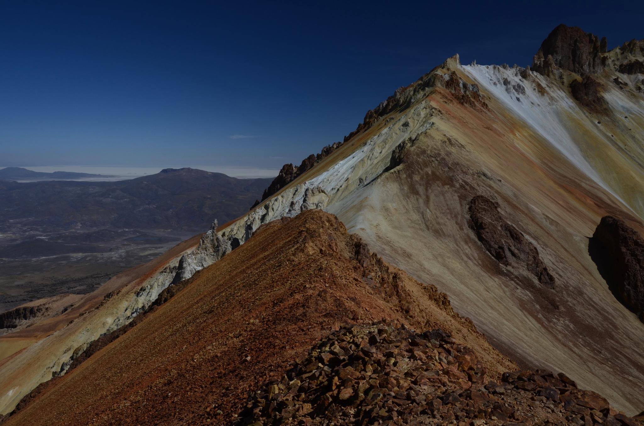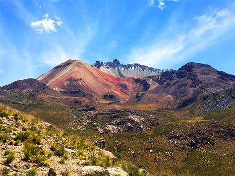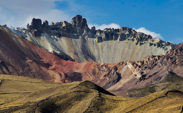 DAY 3.- Very early we leave for Sol de Mañana (geysers) Polques thermal lagoon take a relaxing bath in medicinal waters. Dalí Desert admire the colors of the mountains and then head to Licancabur Volcano at the foot of which is Laguna Blanca y Verde, very close to the Chilean border. Return via Capina, Villa Mar (very picturesque town in the Bolivian highlands) San Cristobal, (largest mining center in Bolivia that exploits in the open pit) Uyuni (end of our services)